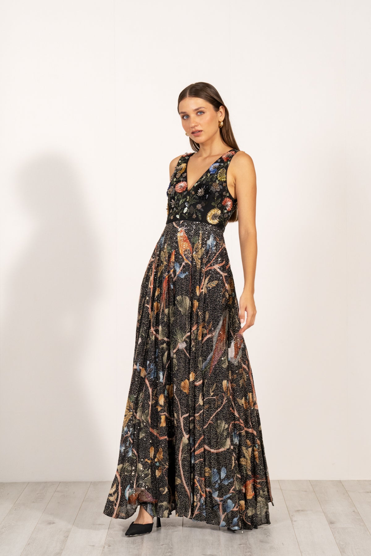 Step into the wild with the CITTALI DRESS, featuring Ranna Gill's signature Congo Forest print. Made with a shimmering sequins fabric with 3D multicolor crystal handwork embroidery. This captivating ensemble exudes sophistication and natural allure, making it the perfect choice for those who seek to embrace elegance with a touch of untamed beauty.