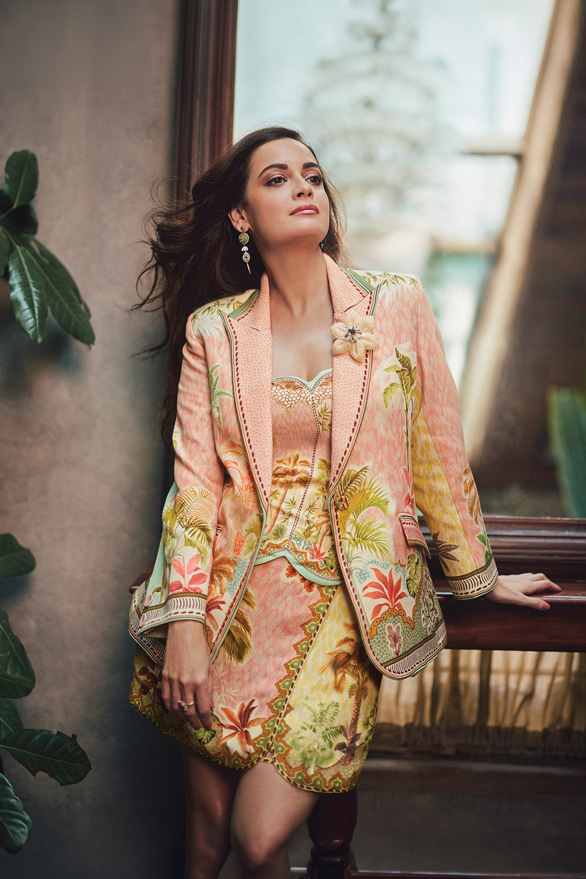 A jacket that frames the body with quiet confidence and visual depth. Crafted in linen viscose, this multi-color piece features the Costa Rica print with layered palm artwork and ornamental borders placed thoughtfully across the surface. Designed with full sleeves and a notch collar that opens into a deep V, highlighted by contrast piping and fine stitch detailing along the edges. The tailored-yet-relaxed fit sits clean on the shoulders and falls fluidly, making it feel structured without feeling stiff.