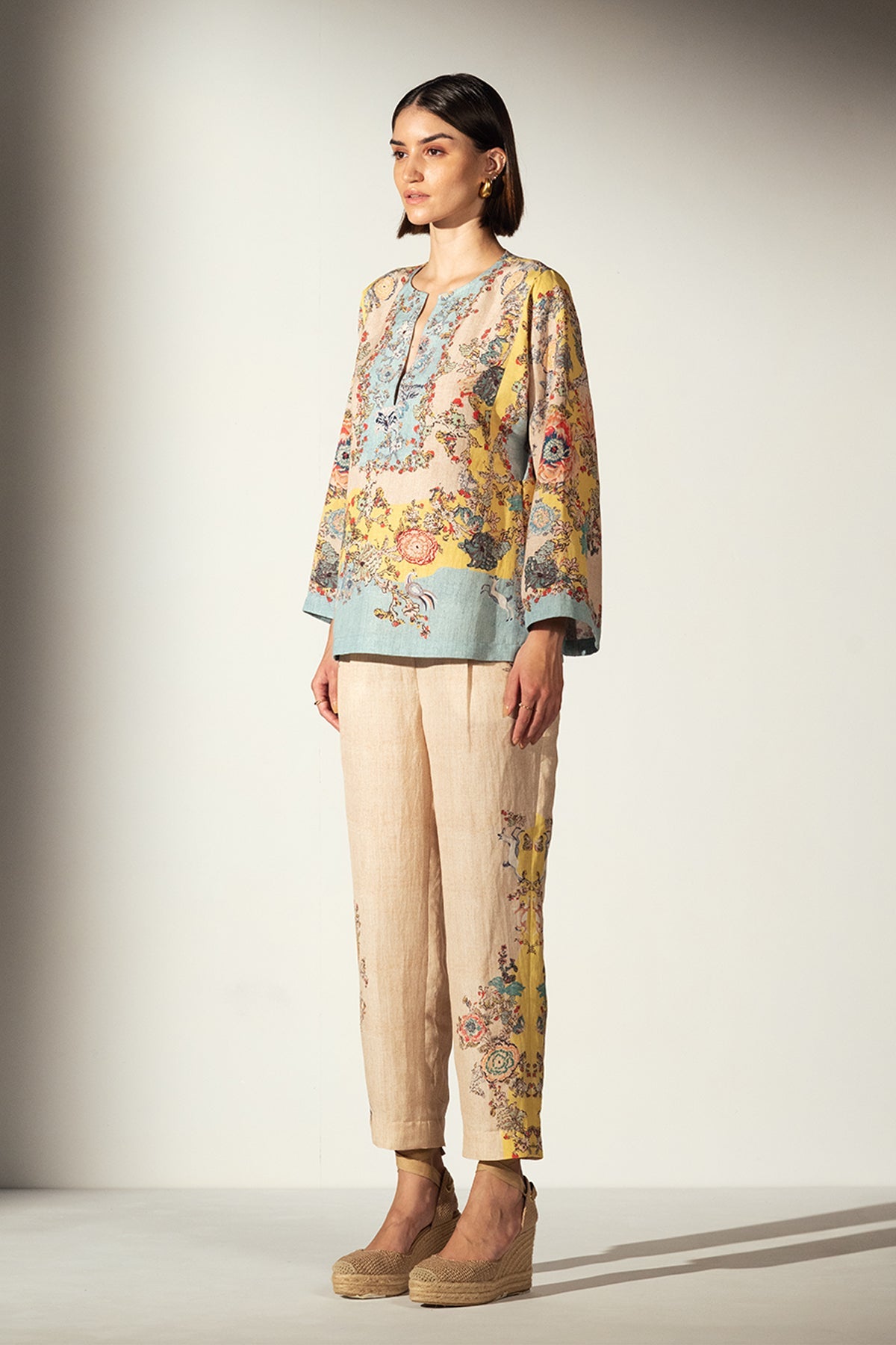 Discover the epitome of style with Jolie Pants featuring Ranna Gill's signature prints. Effortlessly chic, pair them with our Aveline Boho Blouse for a look that seamlessly blends comfort and sophistication. Elevate your wardrobe with this timeless ensemble.
