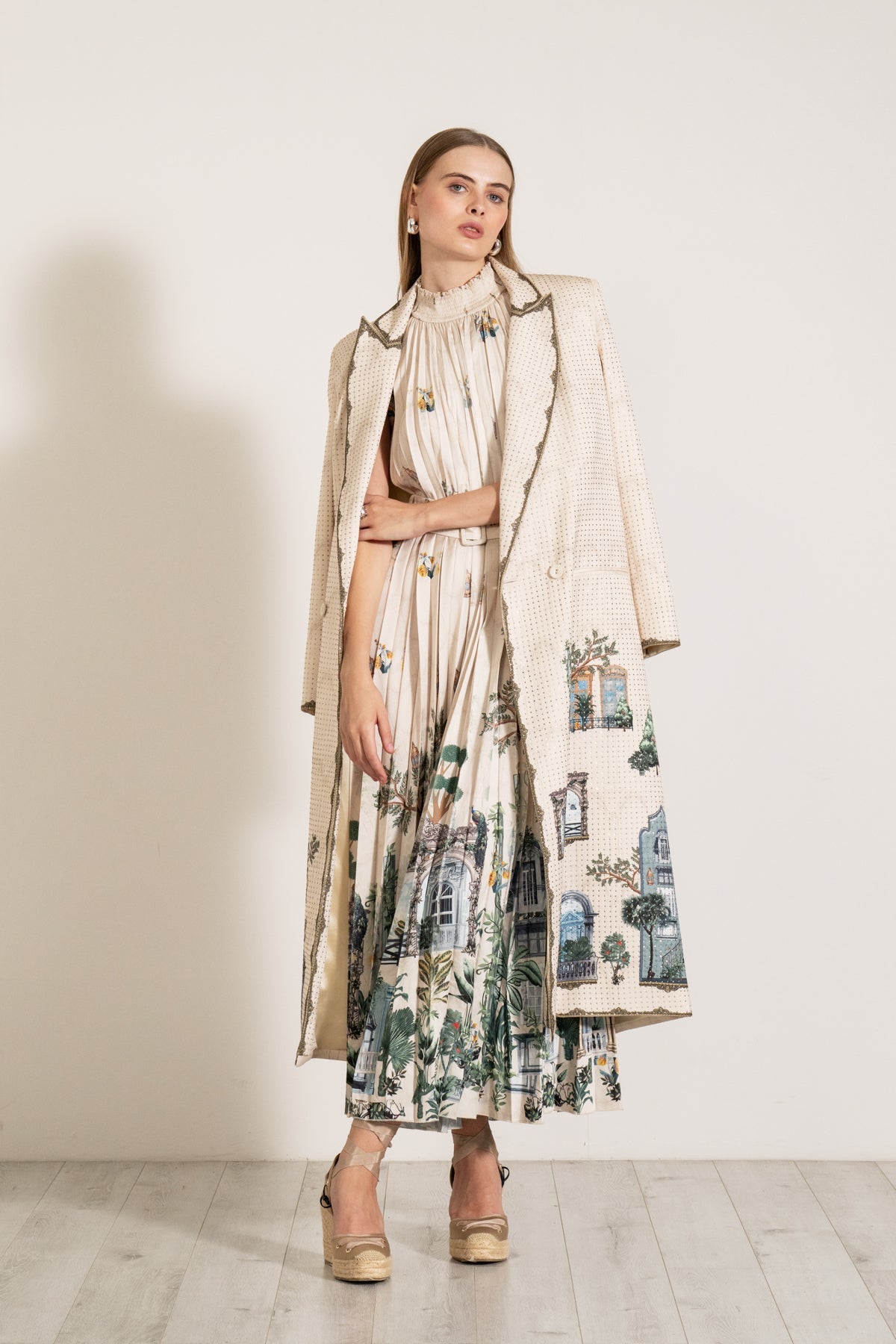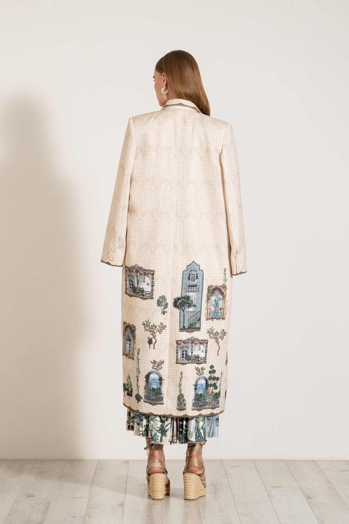 Discover timeless elegance with the SEREINE JACKET featuring the exquisite "Windows of the World" print, crafted from premium double crepe fabric ensuring a luxurious feel and a structured yet comfortable fit. This jacket seamlessly blends cultural artistry with modern sophistication, making it a standout piece in any wardrobe.