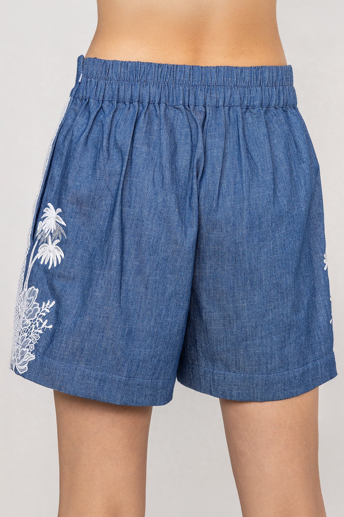 Cut in blue denim, Ranna Gill's Olaf Shorts are designed with a high-waist fit and clean waistband for a secure, flattering hold. Contrast white artwork is placed along the side panels, adding visual definition without overpowering the silhouette. The straight-cut leg offers room through the thigh while maintaining structure. Finished with a smooth front and precise stitching, these shorts feel balanced and well-shaped.